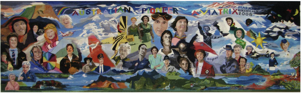The National Pioneer Women’s Hall of Fame resides in Alice Springs. In it is a permanent exhibition dedicated to Australian Pioneer Aviatrix. To commemorate these incredible women, a large colourful tapestry hangs on the wall.